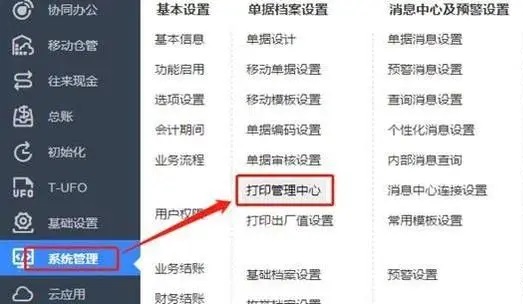 1、进入用友T+系统,点击系统管理-打印管理中心,如图下: