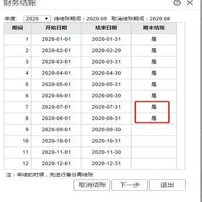 5、取消结账成功后,期末结账对应的字段“是”,就会显示为空白未结账状态