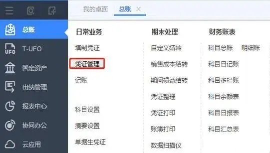 6、取消结账,再来取消记账,点击总账-凭证管理,选择7-8月的凭证进行反记账,如图下操作: