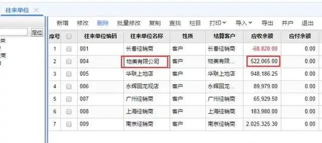 1、进入T+系统,打开基础设置-往来单位,可以看到同样的公司存在两个名称,且都有余额,如图下: