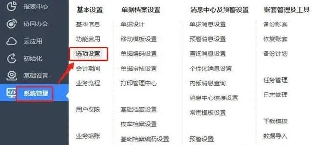 1、进入T+系统,点击系统管理-选项设置,如图下: