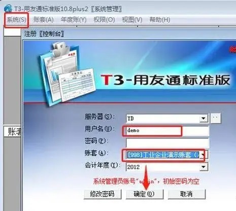 1、T3启用外币,必须到服务器才可以启用。进入服务器电脑,点击系统管理,注册,输入账套主管demo,选择需要启用外币的账套,如图下: