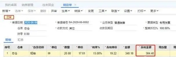答:如图下单据,销货单的应收款是384.40元,收款时我们只收取380元