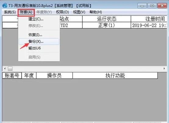 2.登录系统管理后,点击“账套”-“备份”,如图下: