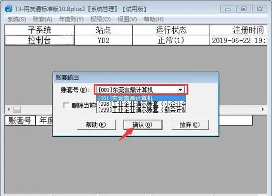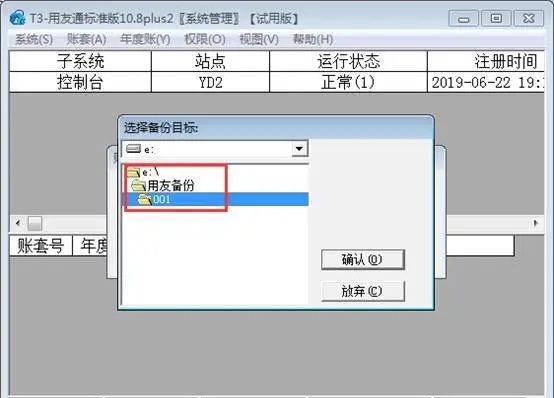 选择需要备份的账套,此处以“001东莞言鼎计算机”账套为例,并点击确认,如果图下: