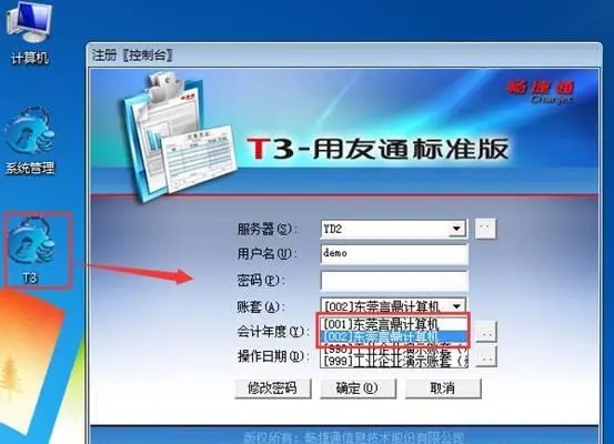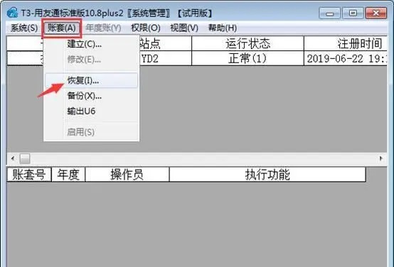 5.恢复成功后,此时我们双击T3,就可以看到新的账套号002与以前账套号001,如图下: