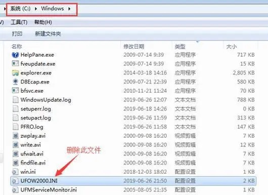 方法二:删除C盘windows目录下的ufow2000.ini文件,