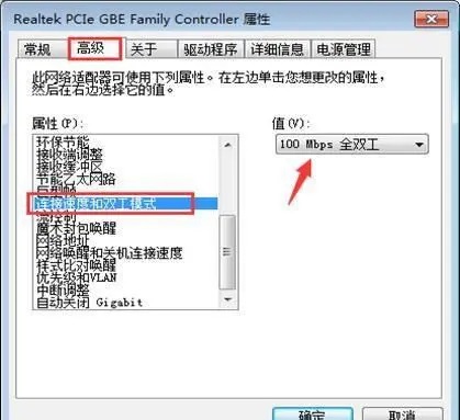 4、在网络共享中心--本地连接--属性点击配置,将“连接速度和双工模式”选择100mps,如图下操作: