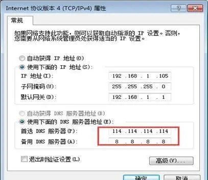 5、将客户端的IP地址设置成固定IP,且将首选dns改为114.114.114.114,备用DNS改为8.8.8.8,如图下: