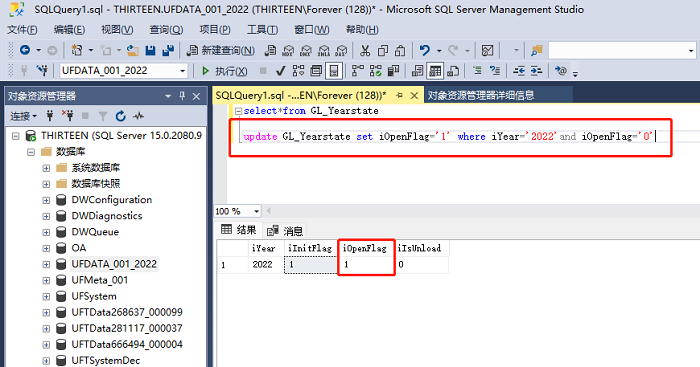 跟踪数据库,发现GL_YearState (总账状态表)中的iOpenFlag(开账标志)异常。