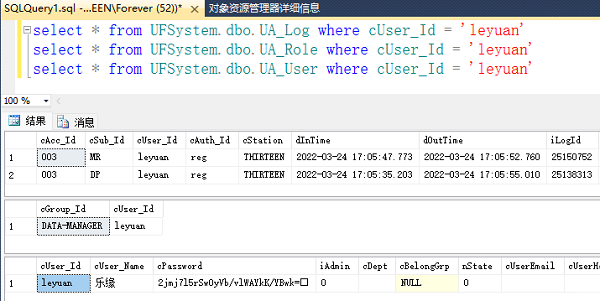 3 select * from UFSystem.dbo.UA_User where cUser_Id = 'leyuan'