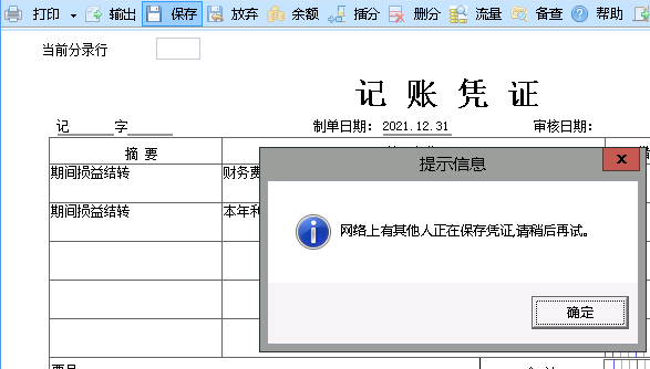 总帐凭证保存时,出现“网络上有其他人正在保凭证,请稍后再试”。但实际上并没有人在保存凭证,没有其他人登录该账套。
