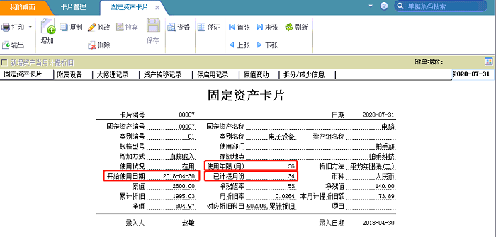 卡片上的已计提月份和根据卡片的使用年限以及开始使用日期计算出正常的已计提月份不一致。