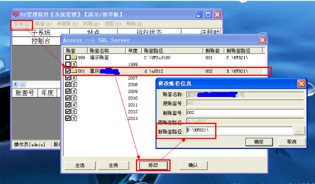 解决方案:4、安装sql2000+U8.21sql版,然后点击 系统管理升级access数据库,找到ufsystem.mdb(U8.11的)的文件