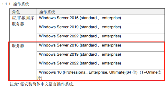 根据畅捷通T+Cloud专属云18.0的最新安装文档可以看到,支持软件的操作系统,已经没有win10和win11了;