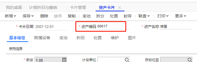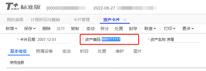畅捷通T+软件,固定资产模块中,资产卡片参与业务工作后(例如,计提折旧、变动等),无法再次修改资产编码。