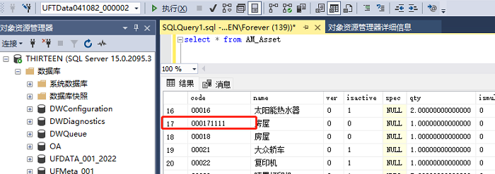 update AM_Asset set code='新资产编码' where code='旧资产编码'执行完语句后,回到软件中查看,需要修改的卡片的【资产编码】已经变为【新资产编码了】。