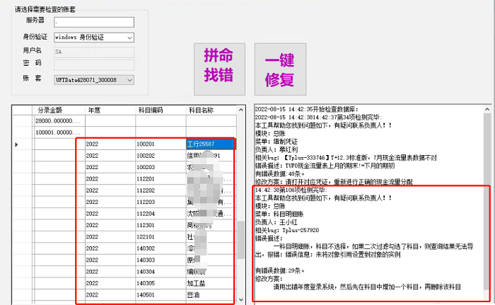 并且单独查询科目明细账,提示:错误:未将对象引用设置到对象的实例。