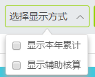 “选择显示方式”可以勾选是否选择“本年累计数”和“辅助核算数”,如下图: