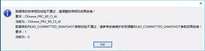 安装致远OA检测数据库的时候提示,如图: