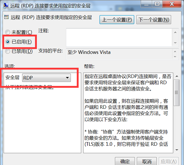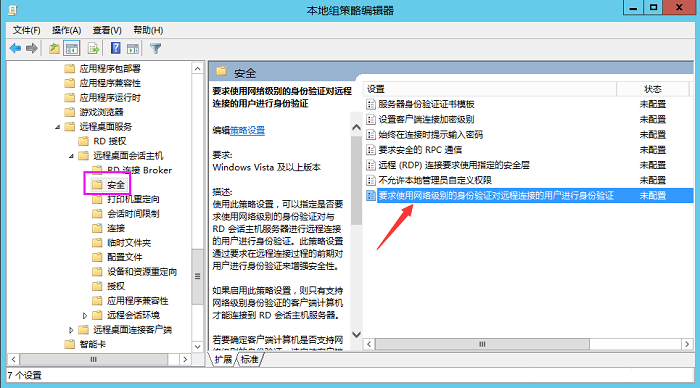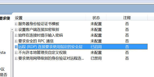 修改组策略:运行—>gpedit.msc->计算机配置—管理模板—windows组件—远程桌面服务—远程桌面会话主机----安全
