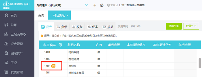 总账-明细账:右上角有一个特殊明细账标志,当设置了外币核算或者数量核算时,会有相应按钮。