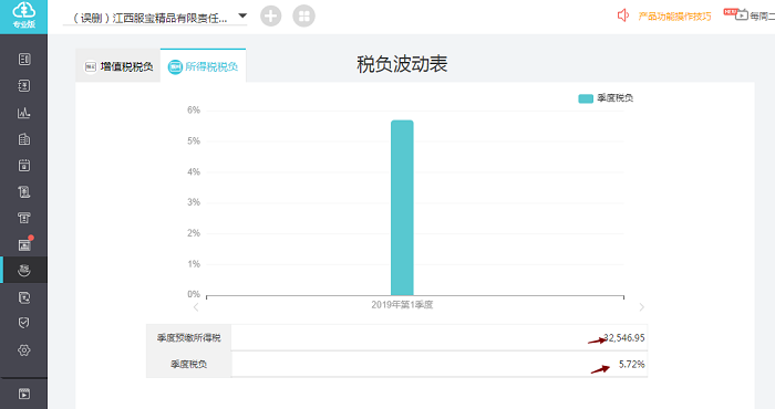 ②税负波动表中所得税税负下“季度预缴所得税”=结账-期末结转,点本季的最后一个月的测算金额后,生成的计提所得税模板所列示金额,季度税负=季度预缴所得税/季度销售收入*100%