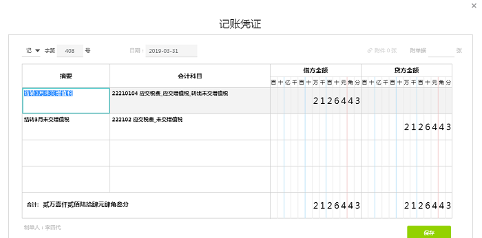2、 在好会计中,我们也是按照这种思路:月底增值税要结转至未交增值税。