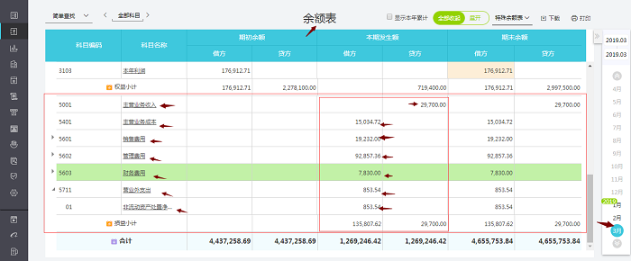 生成此凭证后,最后可查看本期余额表检查:损益类科目都已结平,无余额,利润表正常出具,资产负债表也平衡,利润表与资产负债表勾稽关系也对的上(资产负债表【未分配利润】这项目的期末余额减去年初余额等于利润表【净利润】这项目的本年累计金额)