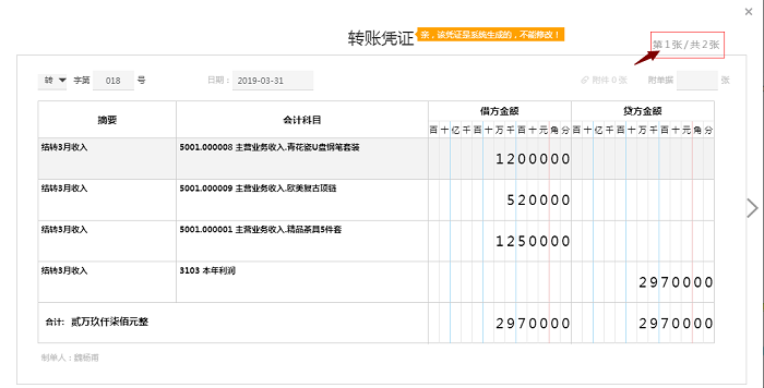 如果选择收入费用分开结转,即生成两张凭证如下: