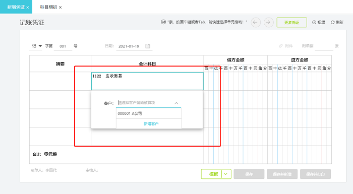 3.添加以后,录入凭证时科目会自动带出辅助核算项目:
