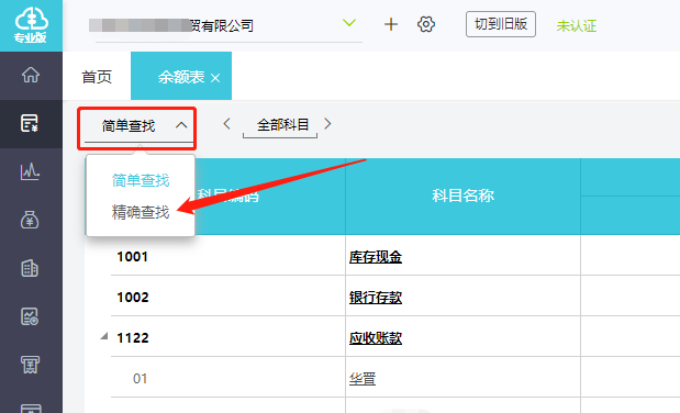 2.将【简单查找】模式切换为【精确查找】模式。