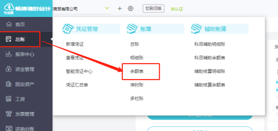 1.点击左侧的菜单栏【总账】-【余额表】。