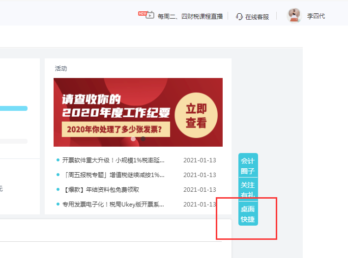 1.打开好会计软件首页,点击右边【桌面快捷】: