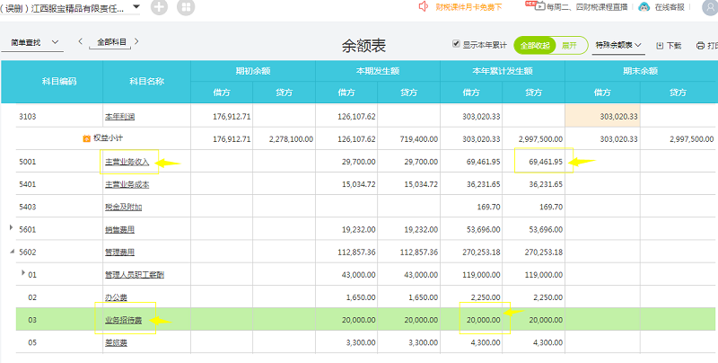 3、需要注意:因涉及到余额表取数,针对此损益类科目(管理费用-业务招待费、主营业务收入、其他业务收入)需账规范做:①日常记账凭证方向不能做反,②不能合并做凭证(与本年利润科目),③不能有余额。