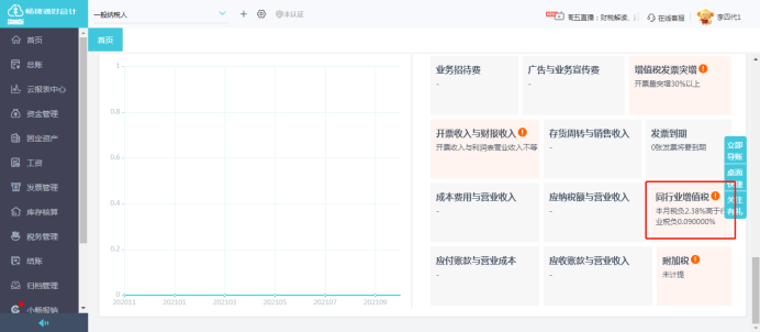 在好会计专业版/旗舰版中首页税务风险分析中可以生成同行业增值税税负预警。