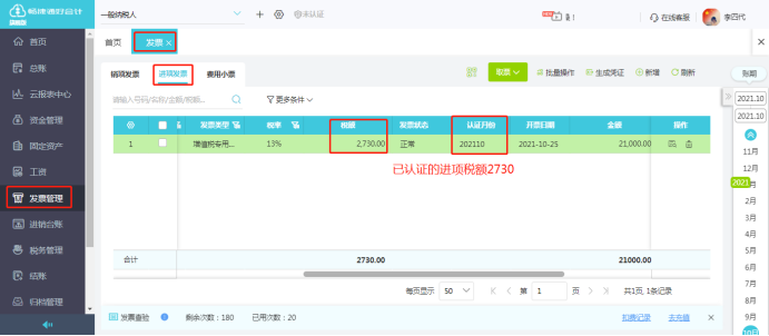 实际缴纳增值税税额=发票管理模块中销项发票的销项税额-发票管理模块中已认证进项发票的进项税额