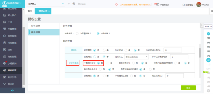 ①在好会计中,需要在【设置】-【财税设置】-【税务设置】模块内设置为【小型微利企业】