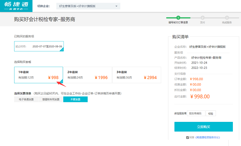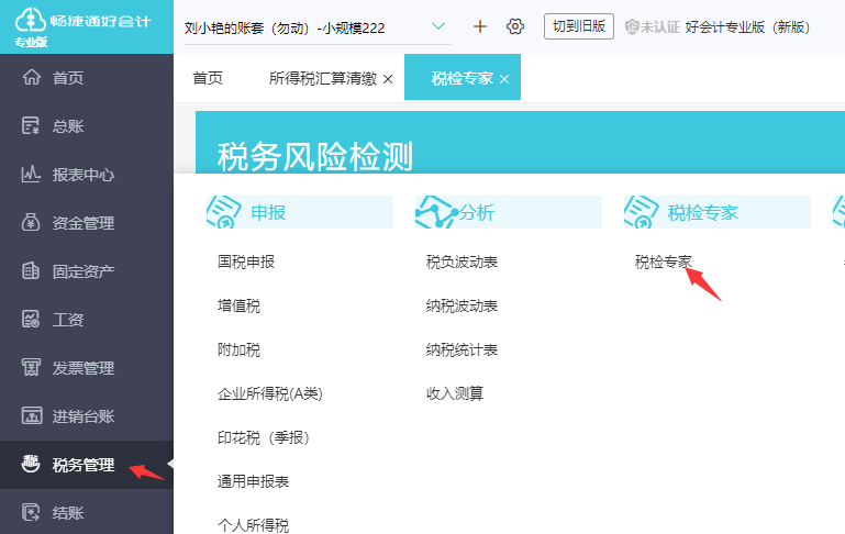 1、好会计专业版/旗舰版可开通税检专家,按998/年收费