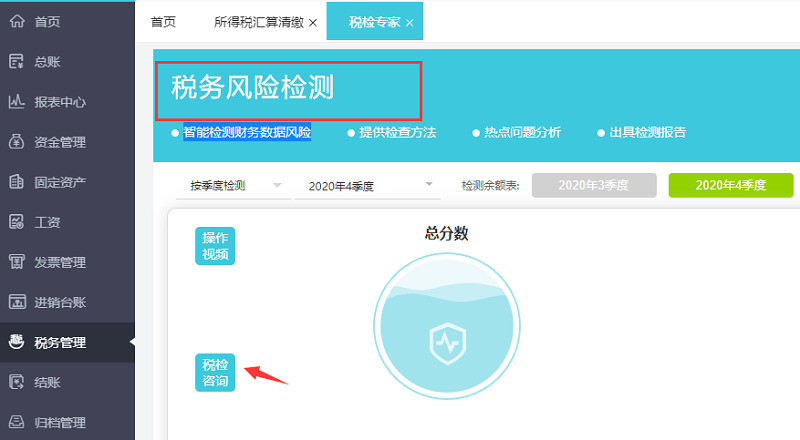 2、税务风险检测可以智能检测财务数据风险,提供检查方法,对于异常问题进行分析,出具检测报告,去防范税务风险,而且还可以进行税检咨询,便于企业的税务把控!