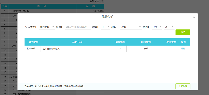 将附表主要项目取数设置好取数公式,点击Fx编辑公式,每个大类下需最少一个科目设置好对应取值公式