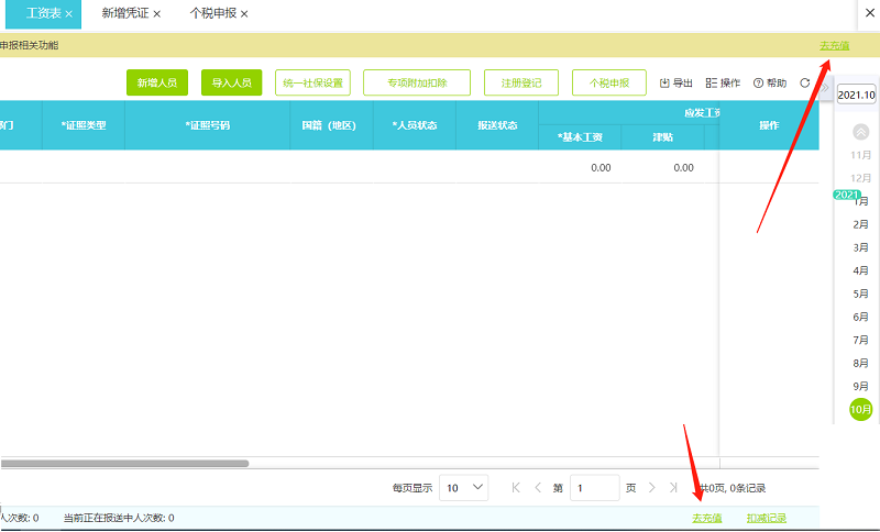 打开工资-工资表,点击充值可以查看收费详情。按人次收费,0.5元/人。