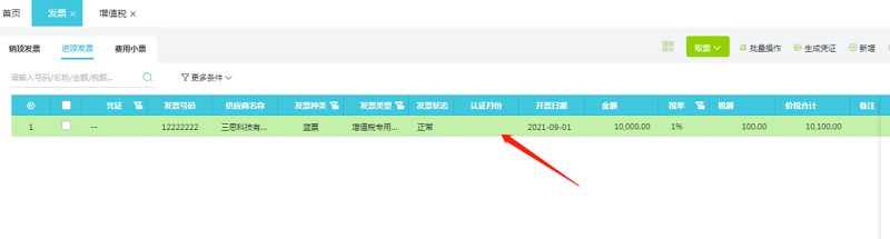在发票界面右上角点击【批量操作】--【批量认证】,选择认证月份,最后点击确定,进项发票虽然没有发票商品明细但是只有认证了增值税申报表也是可以取到数据的。
