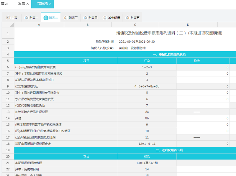 本期认证抵扣的进项发票体现在增值税申报表的附表二