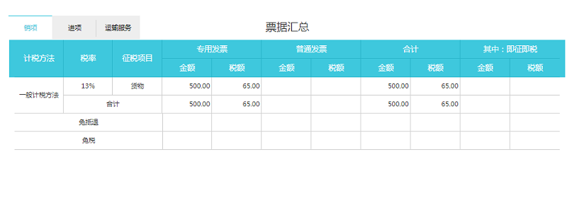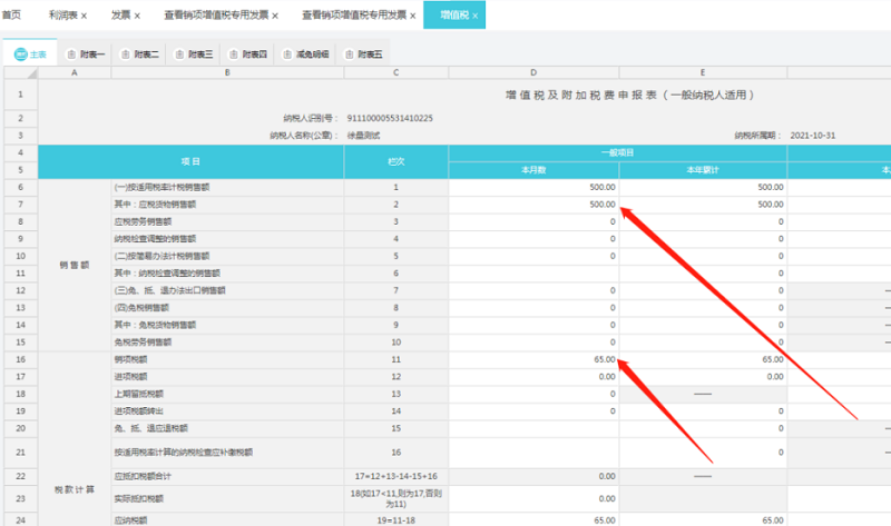 2.录入发票后,增值税申报表会显示相关数据,如图所示: