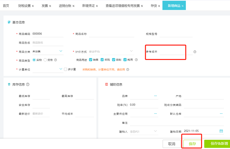 新增存货时,有一个参考成本的的填写项,这个有什么作用?