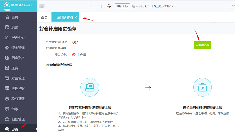 1.启用进销台账: