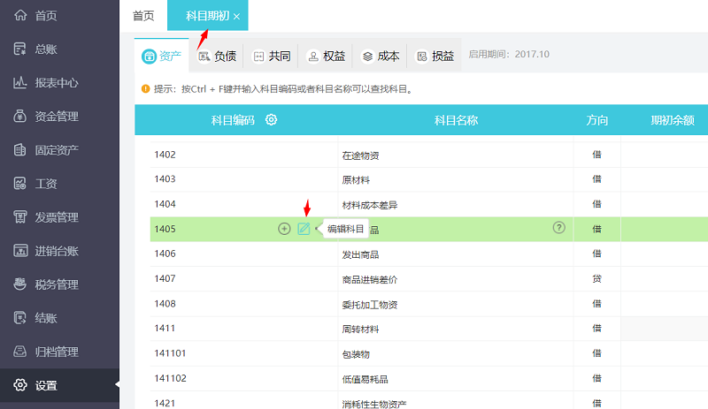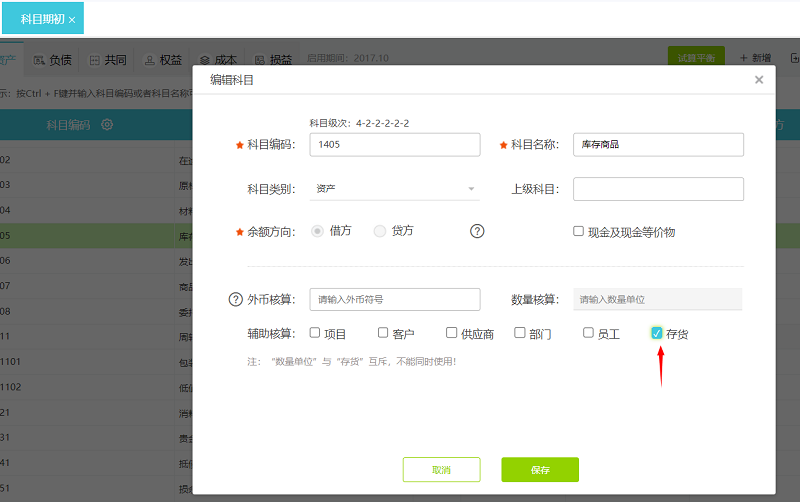 1.1库存商品一级科目挂上存货辅助核算且没有下级科目。