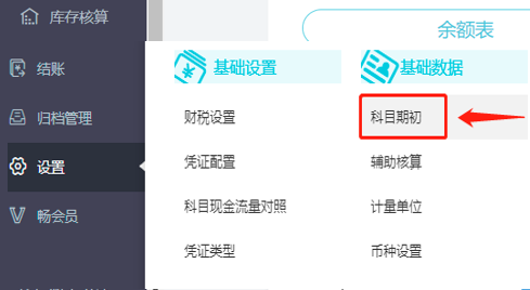 1.1进入系统,点击设置-科目期初