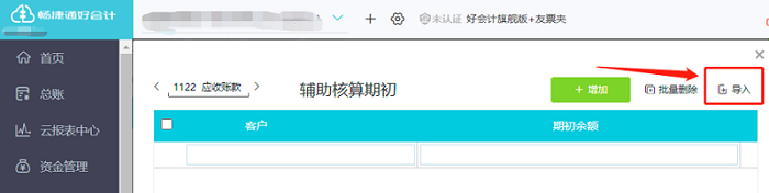 2.1 在辅助核算期初界面中,点击导入